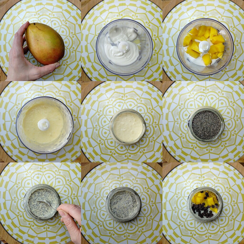 Pudding de chia con mango y chispas de chocolate, un desayuno fresco y ligero para todos vosotros.