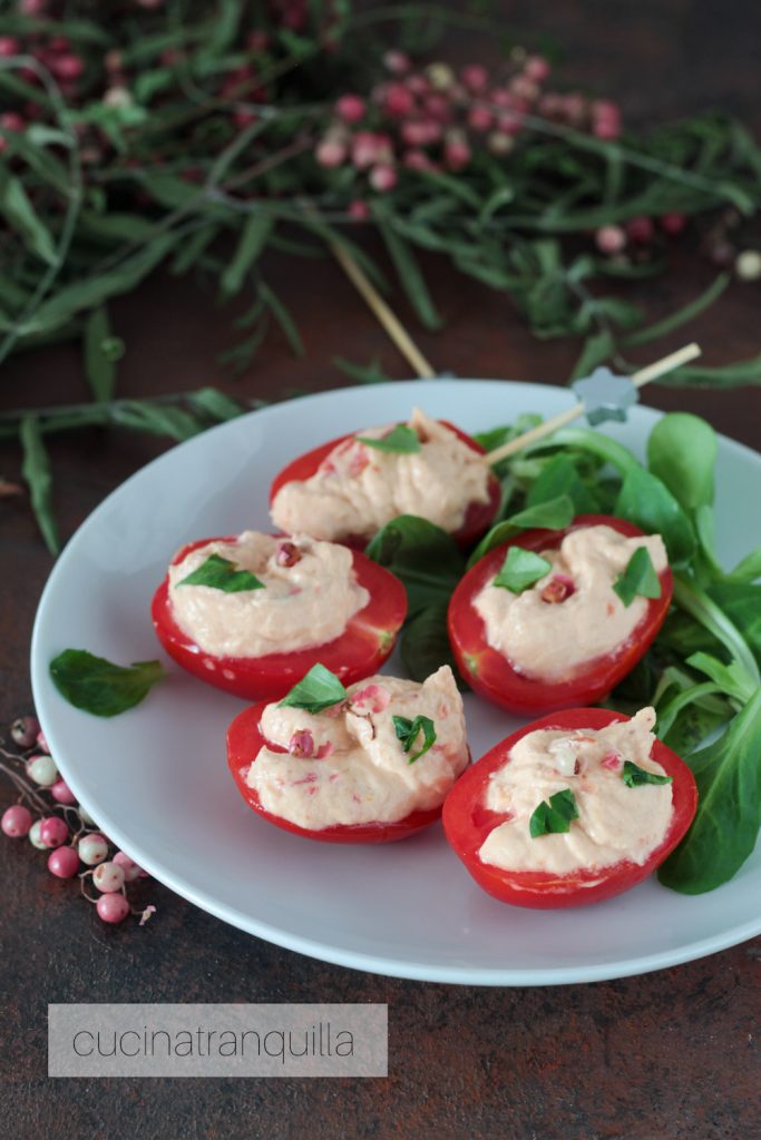 Tomatitos rellenos con crema de atún, fáciles, deliciosos, sin cocción y sin huevos con solo tres ingredientes.