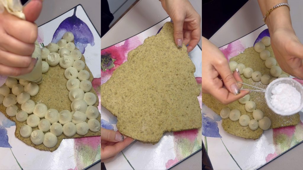 Para la preparación del Árbol Cream Tart Navideño al Pistacho Sin Huevo – Postre Festivo mira el video AQUÍ.