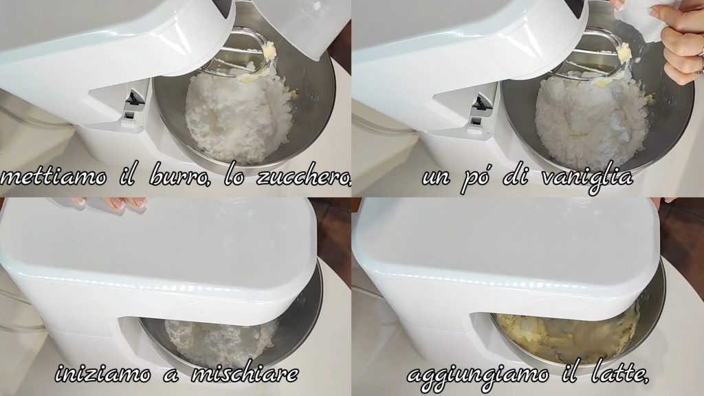 Ponemos la mantequilla a temperatura ambiente, el azúcar, un poco de vainilla y comenzamos a mezclar. Añadimos la leche y hacemos incorporar bien todos los ingredientes.