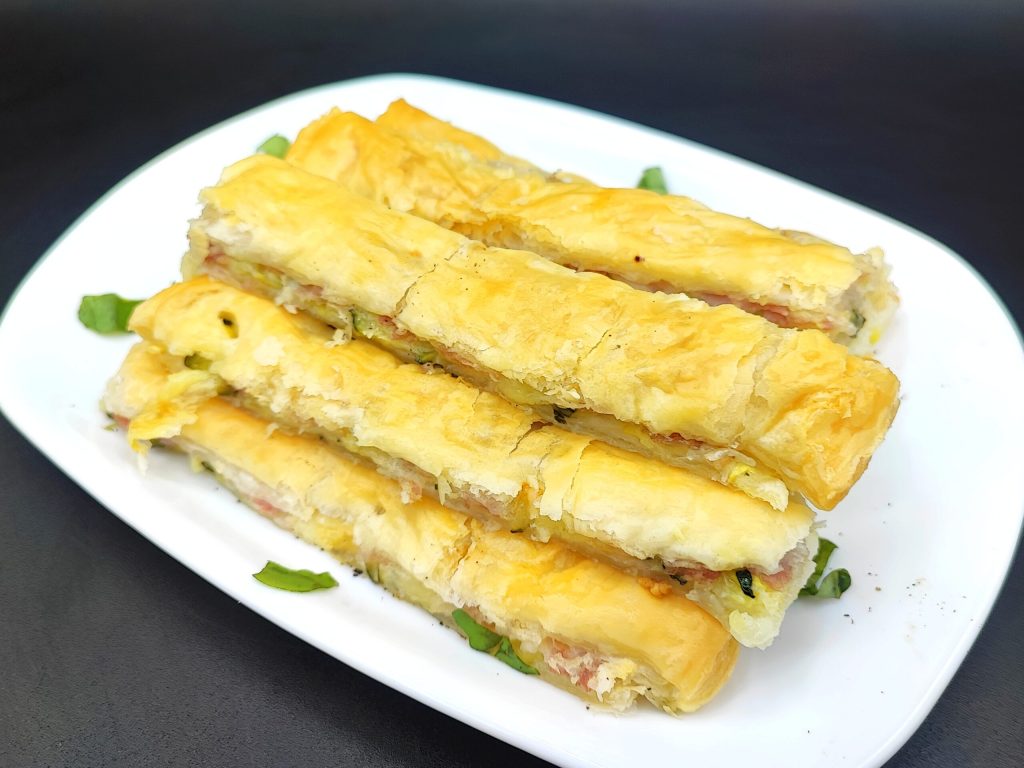 Una receta muy sabrosa, perfecta para llevar a la mesa como entrante o aperitivo. Bastones de hojaldre rellenos con calabacín, bacon y mozzarella 🤤 una verdadera delicia poder probarlos. Los bastones de calabacín son muy fáciles de preparar y son perfectos en cualquier tipo de ocasión, desde días festivos hasta días normales de la semana. Son perfectos también si necesitamos enriquecer un bufé salado para algún evento. Como siempre, podéis personalizar la receta a vuestro gusto, en lugar de bacon podéis usar jamón cocido o speck o simplemente omitirlo, en lugar de mozzarella podéis usar scamorza, provola o también podéis omitirla, en fin, elegid lo que más os guste.
