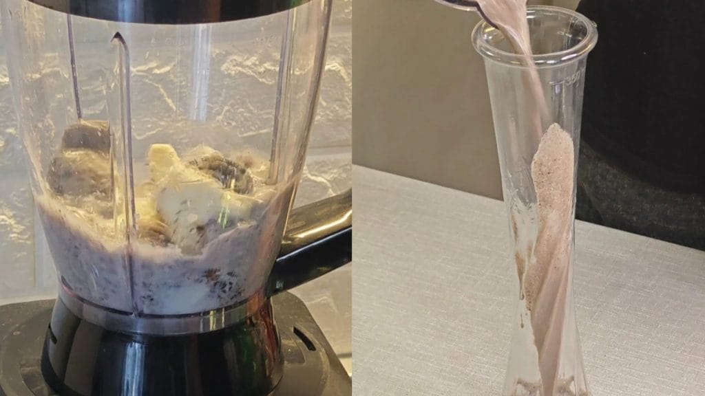 Bate durante unos 30 segundos, hasta obtener una mezcla suave y cremosa. Vierte en los vasos: llena dos vasos altos con tu batido.