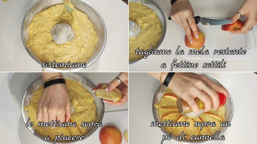 Cortamos la manzana restante en rodajas finas y las ponemos encima. Espolvoreamos un poco de canela encima.
