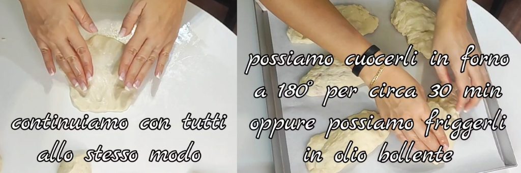Continuamos hasta terminar los ingredientes. Podemos cocinarlos en el horno a 180° durante unos 30 minutos o freírlos en aceite caliente.