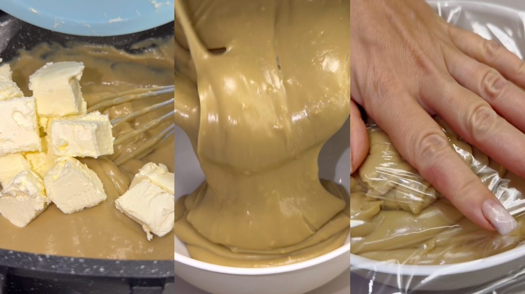 Una vez lista, incorpora la mantequilla, mezcla bien y vierte en un bol. Cubre con film transparente a contacto y deja enfriar completamente.