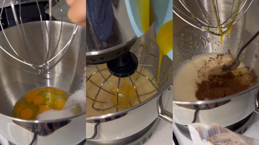 Añade el aceite, el cacao y la levadura. Incorpora la harina y amasa hasta obtener una masa blanda.