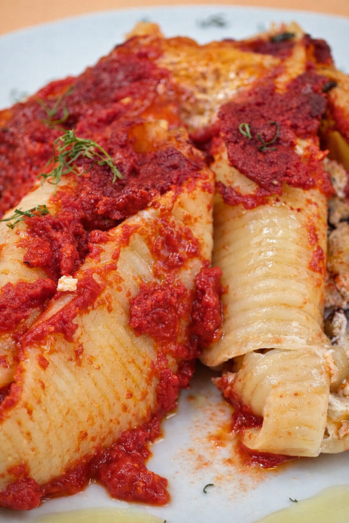 Conchiglioni rellenos de ricotta y berenjenas: primer plato cremoso al horno