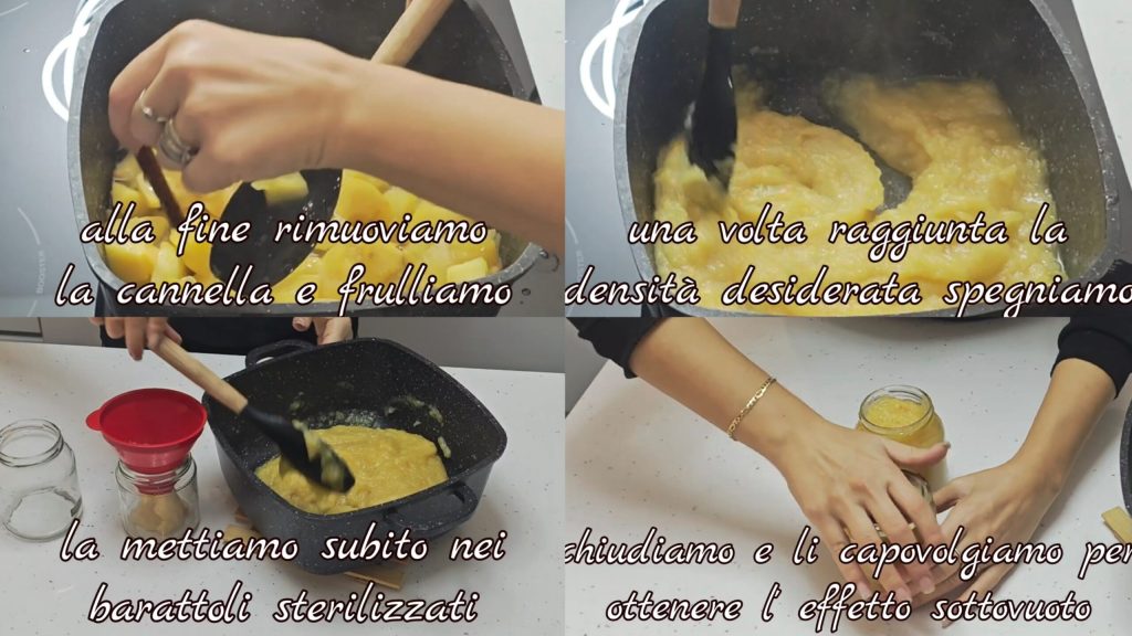 Al final quitamos la canela y lo trituramos. Una vez alcanzada la consistencia deseada, la ponemos en tarros previamente esterilizados. Cerramos bien y los invertimos para crear el vacío.