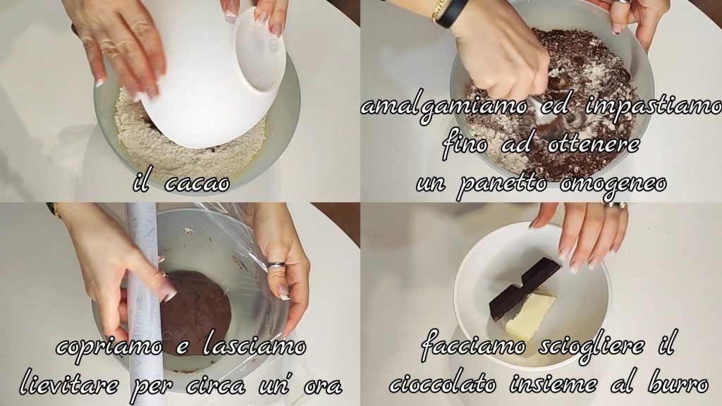 Añadimos el cacao y mezclamos e integramos hasta obtener una masa homogénea. Cubrir con film transparente y dejar leudar durante aproximadamente una hora.