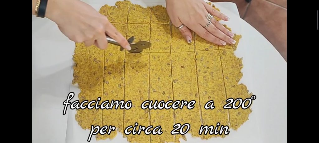 Mezclamos y amasamos hasta obtener una masa homogénea. Ponemos la masa obtenida sobre un papel de horno y la extendemos lo más fina posible (cuanto más fina, mejor y más crujientes serán). Cortamos en piezas del tamaño deseado.