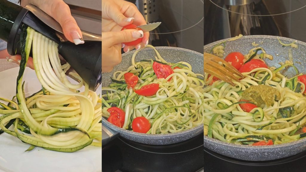 Espaguetis de calabacín al pesto📃receta de verano ligera, fresca y rápida