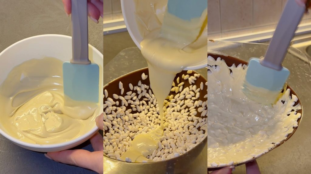 Obtendrás un huevo de chocolate Kinder cereales crujiente, delicioso y casero, perfecto para hacer la Pascua aún más especial.