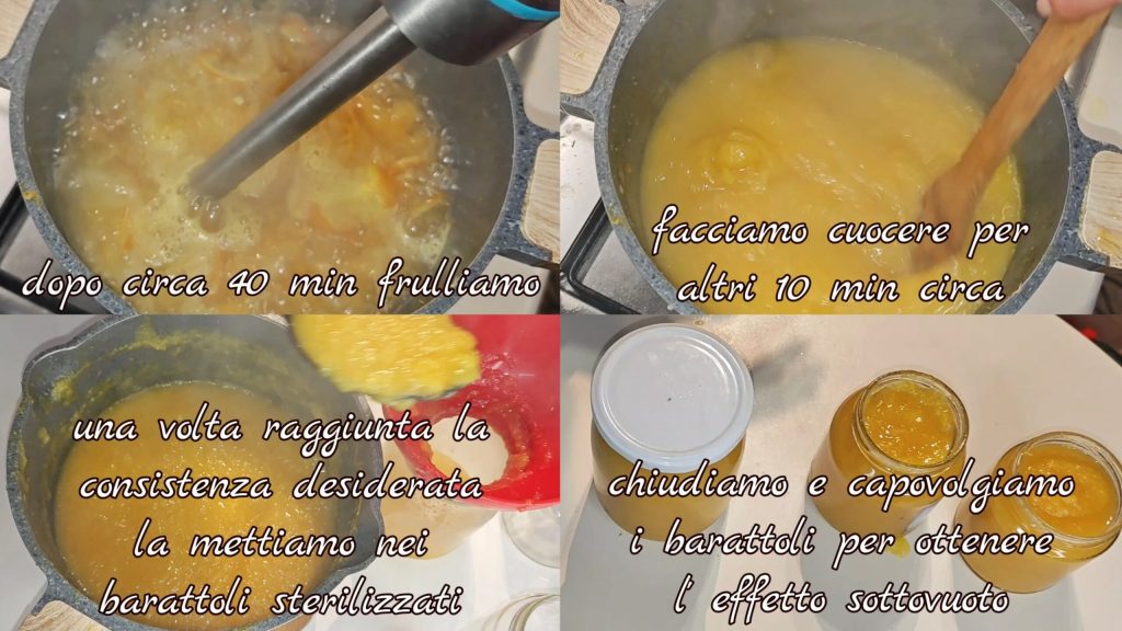 Después de unos 40 minutos trituramos y cocinamos durante otros 10 minutos. Una vez alcanzada la consistencia deseada, la ponemos inmediatamente en frascos esterilizados. Cerramos bien los frascos y los volteamos para crear el efecto de vacío.
