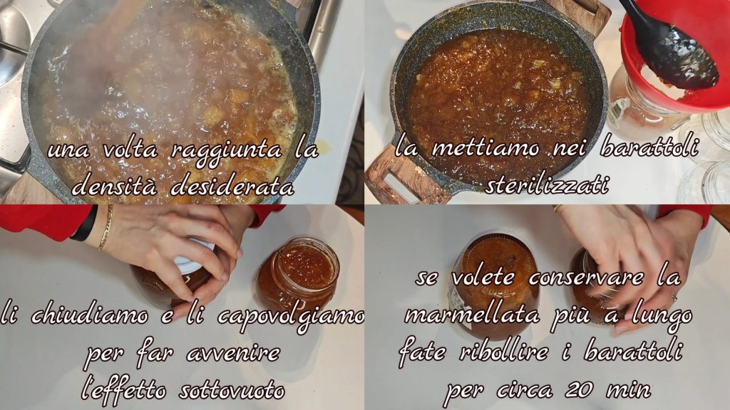 Una vez alcanzada la densidad deseada, la ponemos inmediatamente en los frascos previamente esterilizados. Los cerramos bien y los volteamos para que ocurra el efecto vacío. Si queréis conservar la mermelada por más tiempo, haced hervir nuevamente los frascos durante unos 20 minutos.
