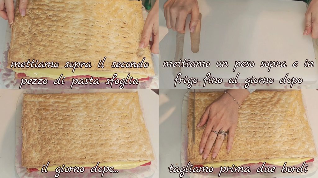 Un gran clásico italiano que nunca falta en las pastelerías, dos capas de hojaldre con dos capas de crema pastelera y en medio bizcocho empapado con alchermes, ¡una delicia! Una receta muy sencilla de preparar pero la dificultad en este caso está en el corte, os he mostrado en el vídeo mi método para cortar de forma más sencilla el diplomático!