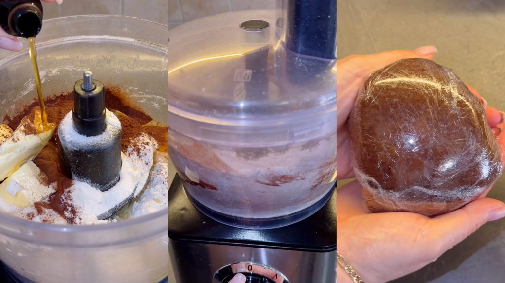 Primero pongo en un bol la harina, el azúcar, el huevo, el cacao y la mantequilla.
