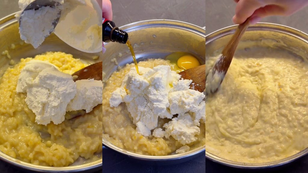 Cuando el arroz esté frío añado la ricotta y el huevo.