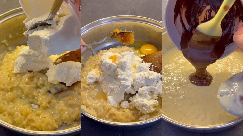 Cuando el arroz está frío añado la ricotta y el huevo.