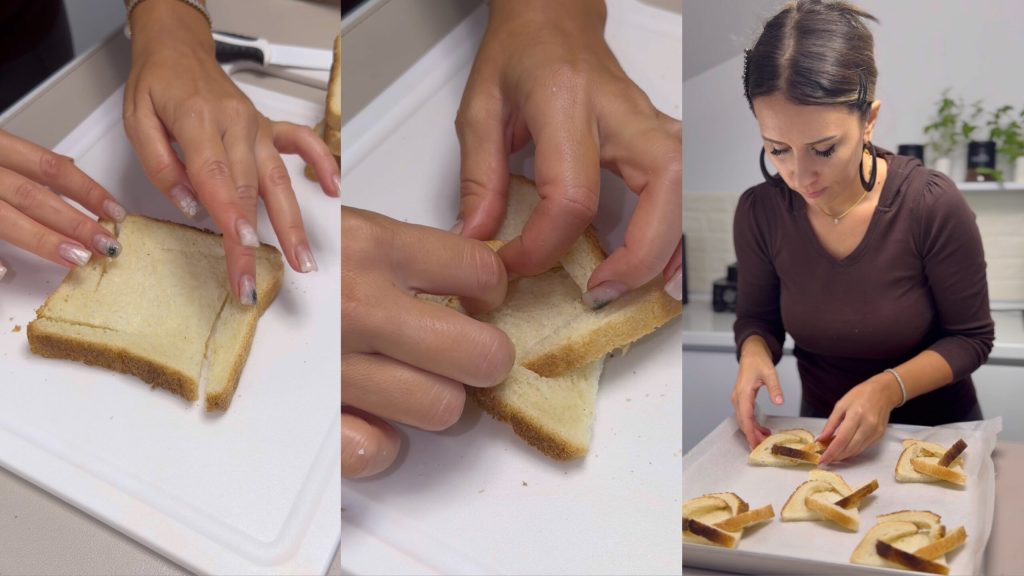 🔪 Cuchillo afilado → para cortar los cuadrados de pan de molde y hacer los cortes en las esquinas