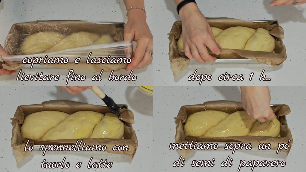 • cubrimos y dejamos que fermente hasta que duplique su tamaño, luego lo pincelamos con yema y leche. Ponemos encima un poco de semillas de amapola