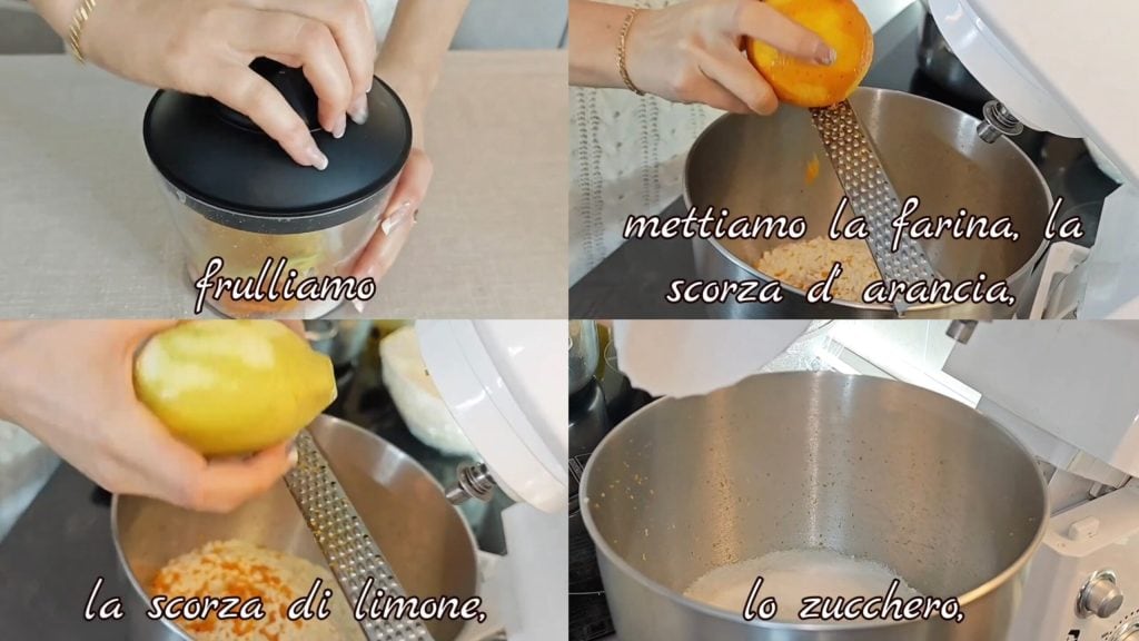 Ponemos la harina, la cáscara de naranja, la cáscara de limón, el azúcar,