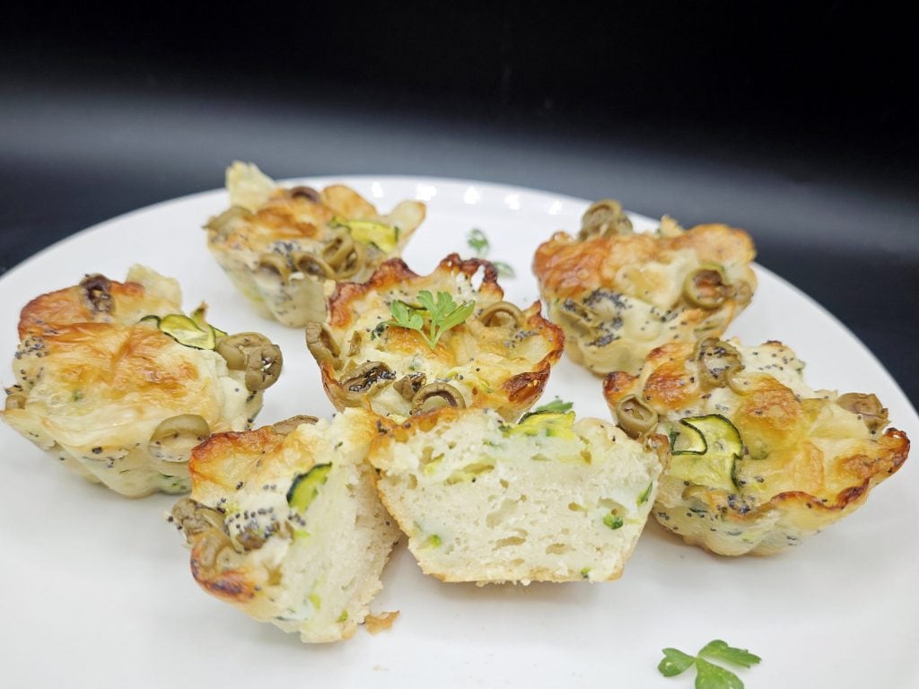 Unos pastelitos deliciosos perfectos como aperitivo o entrante para cualquier tipo de menú. He enriquecido la masa con calabacines, ricotta y mozzarella, y si se desea, se pueden añadir embutidos a vuestro gusto o usar otros tipos de quesos. ¡Una receta muy sencilla y rápida de preparar y muy cómoda de servir ya que están hechos en porciones individuales!