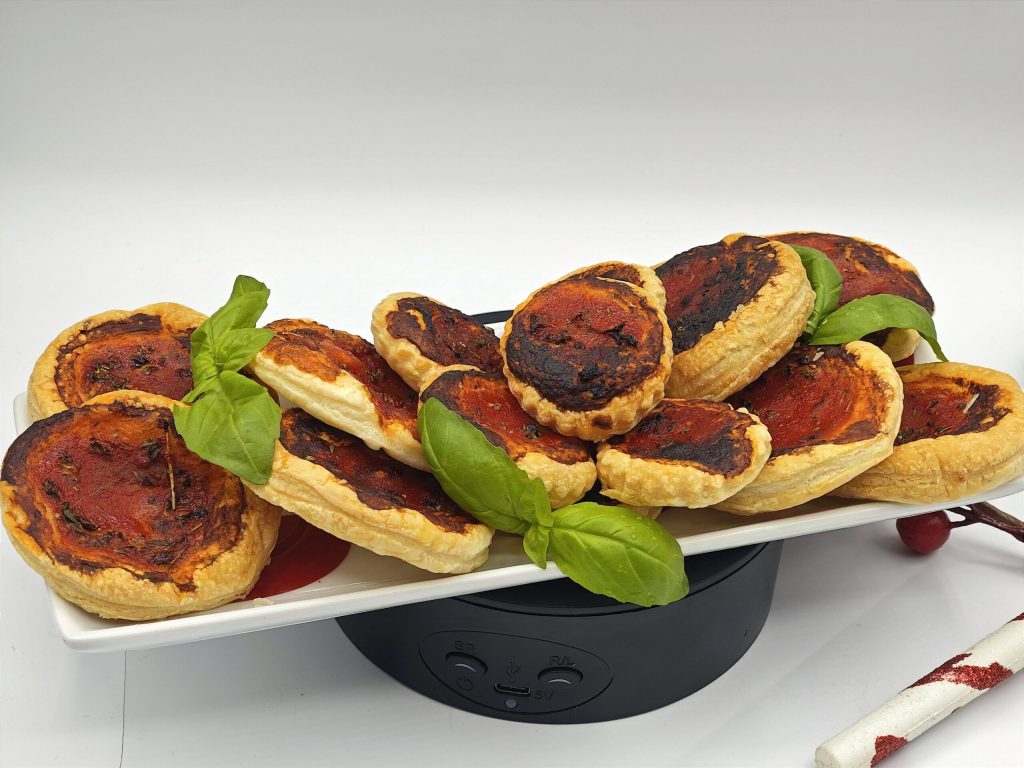 Las pizzitas son siempre imprescindibles en las mesas durante las fiestas, en los buffets de aperitivos, en los aperitivos, para las meriendas, tentempiés, en fin, las pizzitas no faltan en ningún momento. Para el período de las fiestas navideñas si tienes que preparar un aperitivo o entrante sencillo en pocos minutos te recomiendo esta receta que he elegido hacer en versión clásica solo con tomate, así son también veganas y podemos satisfacer todas las necesidades. ¡Pero si prefieres también puedes añadir mozzarella encima! Como me encuentro muy bien en este período con la freidora de aire la cocción la hice allí y debo decir que me gustó mucho!