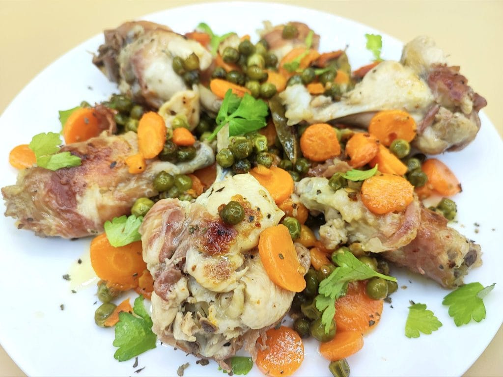 La preparación del pollo con guisantes y zanahorias es muy sencilla y rápida, mirad el video AQUÍ.