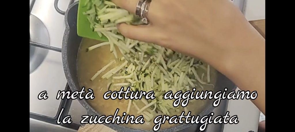 • A mitad de cocción añadimos el calabacín rallado y continuamos la cocción.