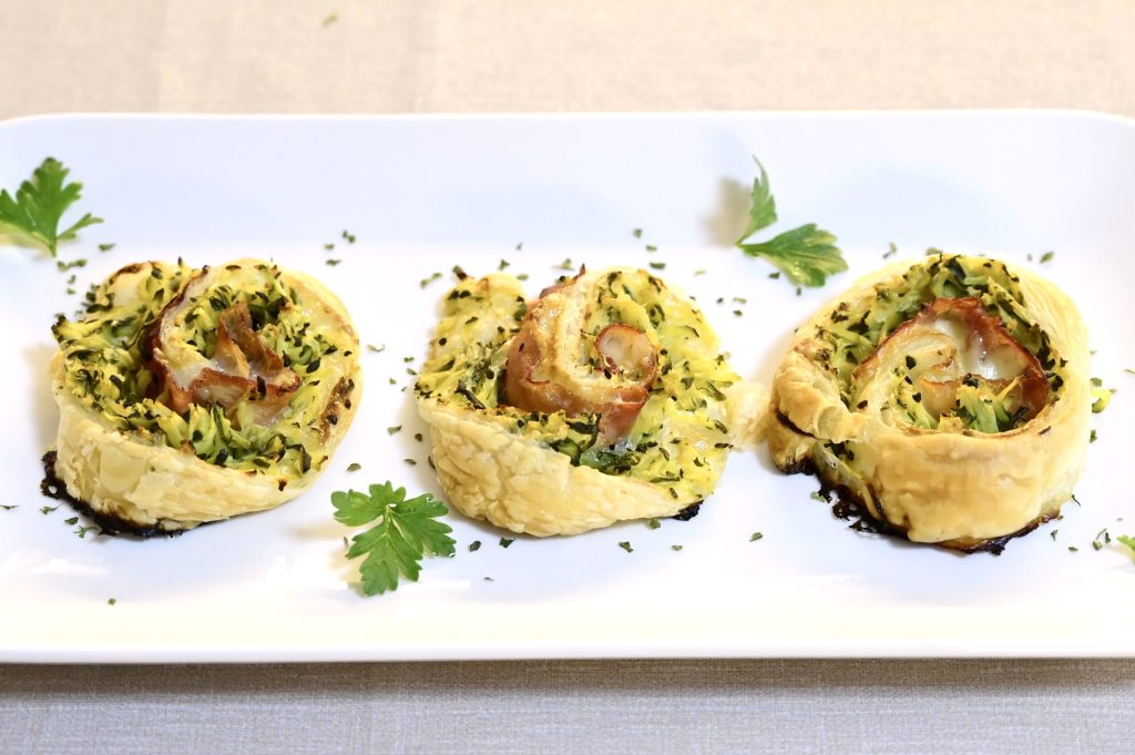¡Una receta sencilla y muy rápida de preparar en cualquier día de la semana! Una base de hojaldre cubierta con mascarpone, calabacines, jamón cocido y scamorza, ¡una delicia! Si necesitas una receta deliciosa para llevar a la mesa como entrante o aperitivo, prueba estos rollos, son deliciosos y si deseas también puedes personalizarlos al gusto usando quesos y embutidos a placer (provola, speck, salami picante, etc).