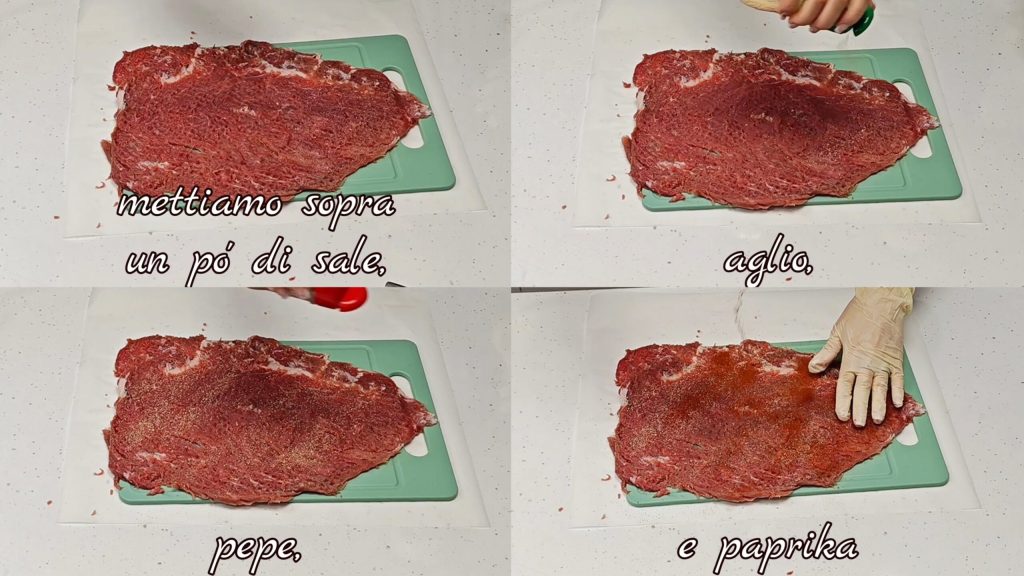 Ponemos un poco de sal, ajo, pimienta y pimentón encima.