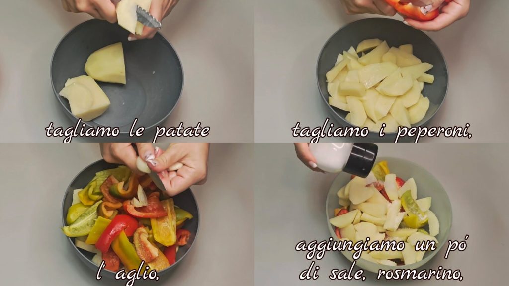un plato sencillísimo perfecto para cualquier día de la semana e incluso para los días festivos. ¡Con una única receta se obtiene tanto el segundo como el acompañamiento! En lugar de encender el horno ya que éramos solo dos personas, he elegido usar la freidora de aire y debo decir que quedan mucho mejor y se cocinan mucho antes que en el horno tradicional!