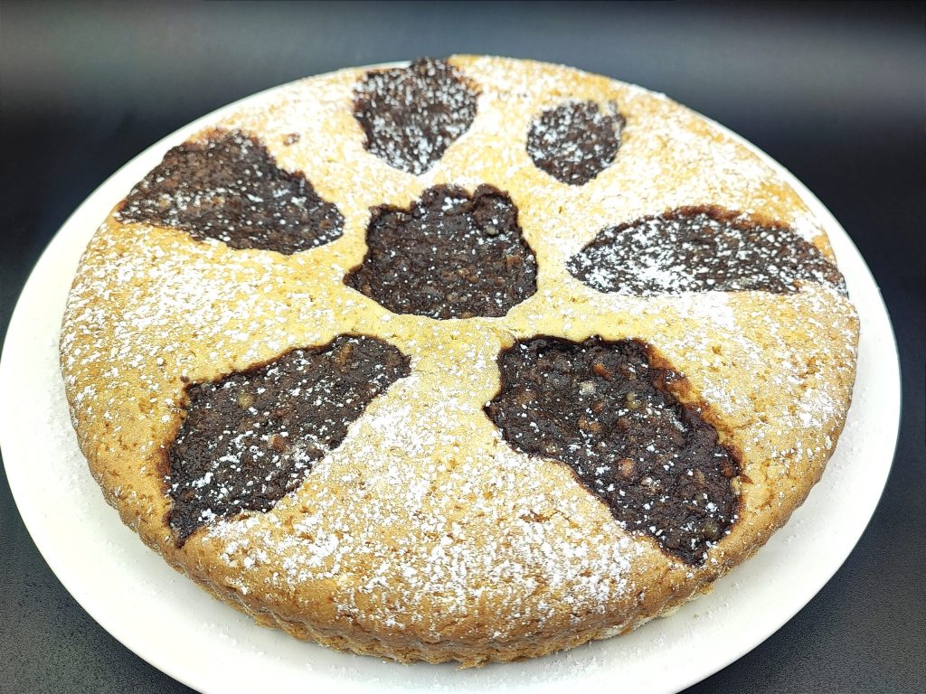 Un postre sencillo y rápido de preparar con dos ingredientes que a todos les encantan: el chocolate y las nueces, ¡una combinación EXTRAORDINARIA! Una tarta hecha en el molde para tarta que podemos servir en el desayuno, merienda, tentempié de la tarde y también como postre al final de la comida.