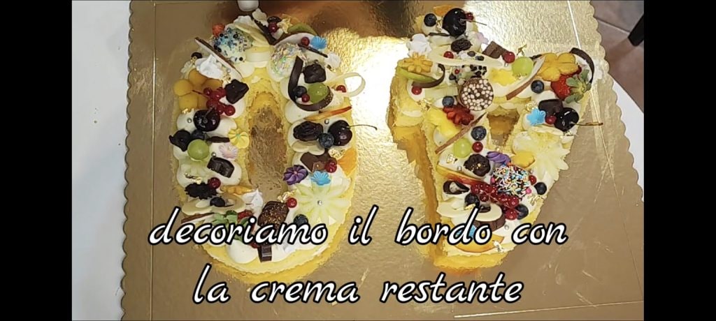 Procedemos de la misma manera con el segundo número. Ponemos una capa de crema encima de ambos. Decoramos al gusto con fruta fresca, chocolate, etc.