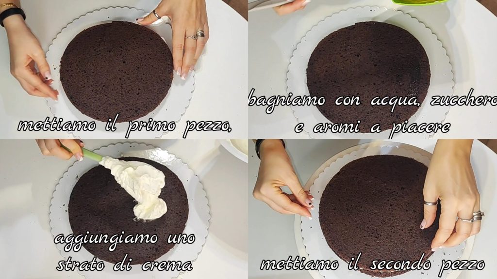 Ponemos el primer disco de 20, lo humedecemos con agua, azúcar y aromas al gusto (os recomiendo un poco de ron). Añadimos una capa de crema, el segundo disco de 20.