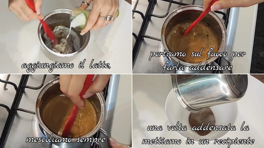 Añadimos la leche y llevamos al fuego para que espese removiendo. Una vez espesa, la ponemos en un recipiente, cubrimos con film y dejamos enfriar bien.