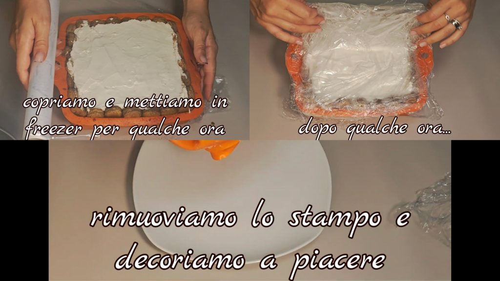 Cubrir con film transparente y poner en el congelador durante unas horas, luego retirar el molde y decorar al gusto.