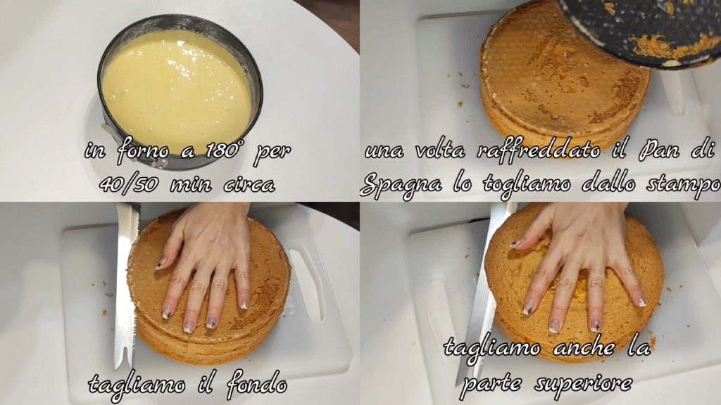 Horneamos a 180° durante unos 40/50 min. Dejamos enfriar bien luego lo sacamos del molde, cortamos el fondo y también la parte superior (lo más fino posible).