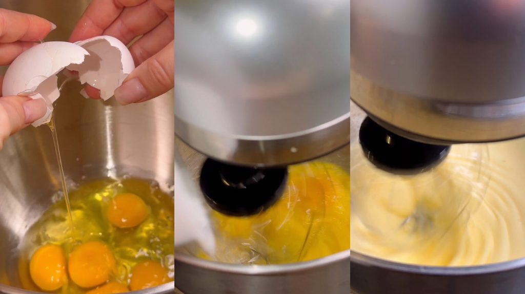 Bate los huevos con el azúcar hasta obtener una mezcla clara y espumosa.