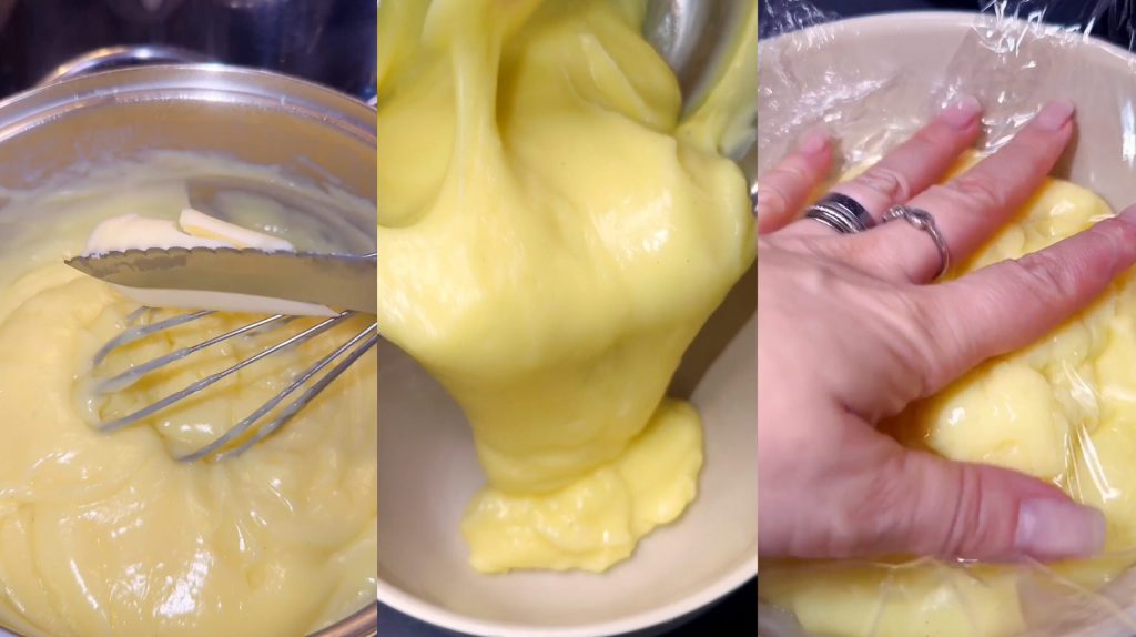 Retira del fuego, añade la mantequilla y pasa la crema a un bol.