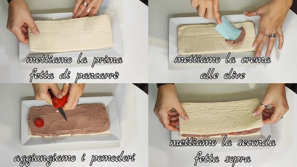 Una receta fácil y rápida para llevar a la mesa en estos días de fiesta, para servir como entrante frío o como un rico aperitivo! Una tarta salada muy vistosa hecha con capas de pan de molde rellenas con crema de queso, crema de aceitunas, jamón cocido, tomatitos y encurtidos variados. Obviamente, si hay algo que no te gusta, puedes omitirlo tranquilamente o sustituirlo con otros ingredientes a tu gusto. Esta tarta es perfecta para cualquier ocasión y dado que no requiere ningún tipo de cocción, es muy sencilla y rápida de preparar.