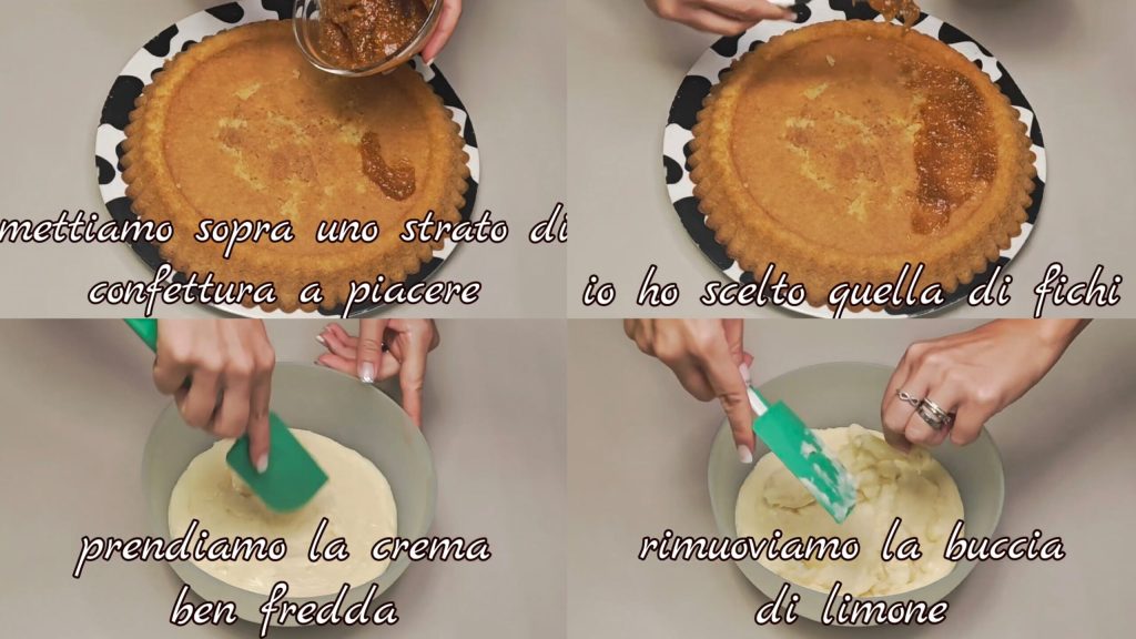 Ponemos encima una capa de mermelada a gusto (yo he elegido de higos). Tomamos la crema bien fría, retiramos la cáscara de limón