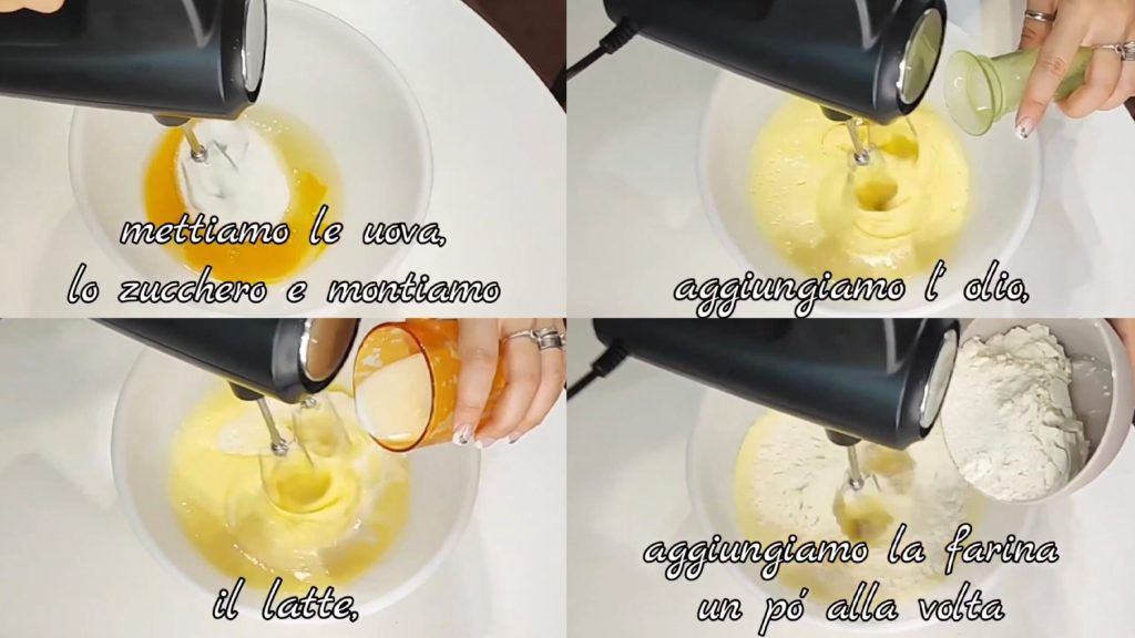 Añadimos también la levadura tamizada y mezclamos bien. Engrasamos el molde furbo (el que tiene doble fondo) con aceite, enharinamos y ponemos la mezcla. Golpeamos ligeramente para eliminar el aire y cocinamos durante unos 20/25 min a 180° C. Una vez lista, dejamos enfriar bien, luego volteamos y retiramos el molde.