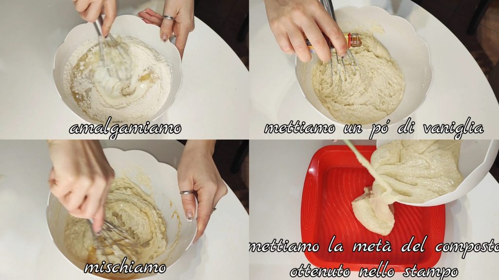 mezclamos bien. Ponemos un poco de vainilla y otros aromas al gusto. Ponemos la mitad del compuesto obtenido en el molde