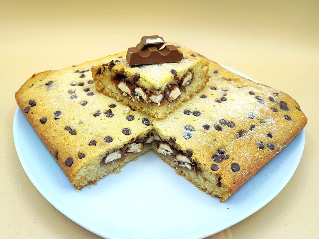 Una deliciosa tarta perfecta en cualquier momento del día desde el desayuno hasta la merienda, tentempié y postre al final de la comida. Una base hecha sin huevos y vertida en dos partes, y obviamente como se puede intuir ya por el nombre, en el medio hemos puesto una capa de barritas Kinder, qué os voy a contar, la delicia 😋🤤 Una receta deliciosa y al mismo tiempo muy sencilla y rápida de preparar! Si tenéis otro chocolate favorito en lugar de las barritas, simplemente hay que poner las tabletas de chocolate que más prefiráis (la próxima la haré con las tabletas Lindt ☺️).