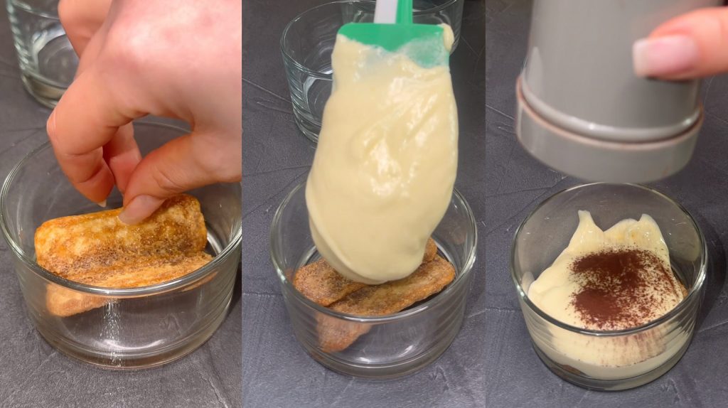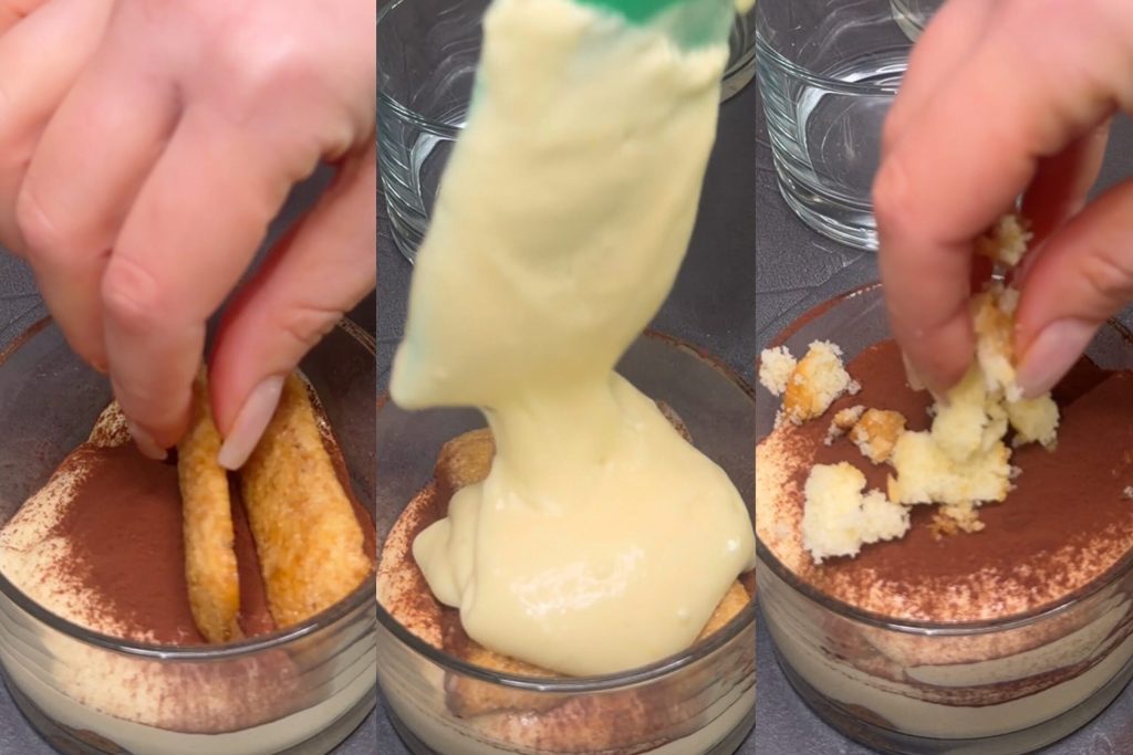 👉 Si quieres, también puedes alternar las capas a tu gusto, jugando con pavesini y cubitos bañados en café: ¡queda siempre precioso!