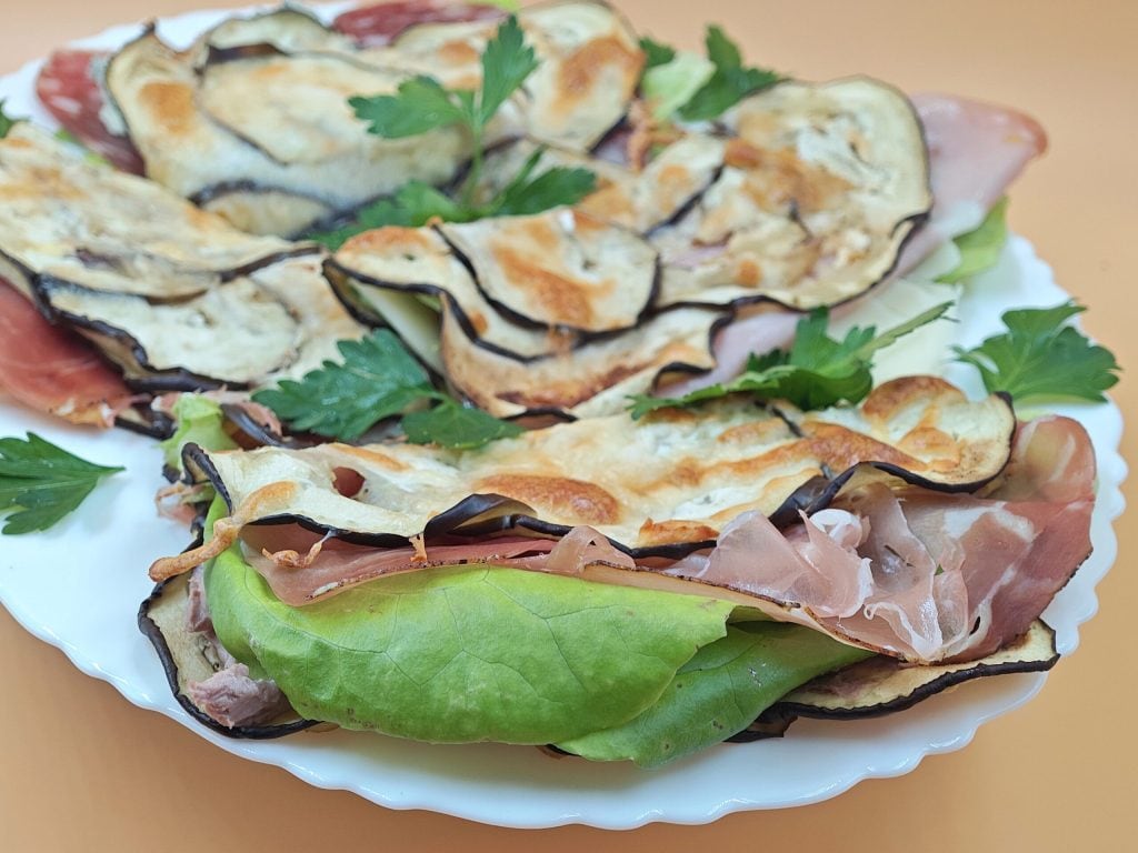 Visto el éxito que tuvo mi Rollo de berenjenas, pensé que también os gustaría esta versión de tortitas hechas con berenjenas siguiendo más o menos el mismo procedimiento. Una receta sencillísima perfecta para preparar si tenemos poco tiempo disponible o queremos comer algo diferente. ¡Lo bonito es que podemos rellenarlas según nuestro gusto con embutidos y quesos a placer!