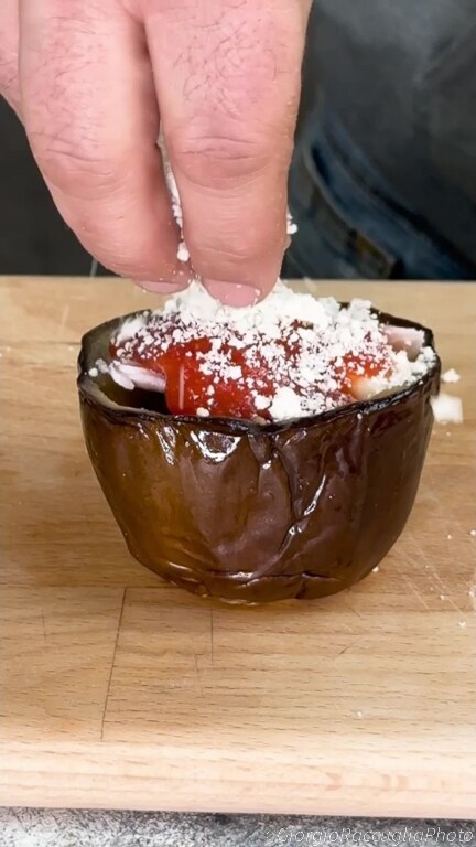 El inicio de esta preparación involucra las berenjenas, protagonistas indiscutibles del plato. Vaciadas de su pulpa interna, las berenjenas se fríen hasta obtener una textura dorada y crujiente. Esta técnica de cocción les confiere a las berenjenas una textura irresistible, creando la base perfecta para acoger los demás ingredientes.