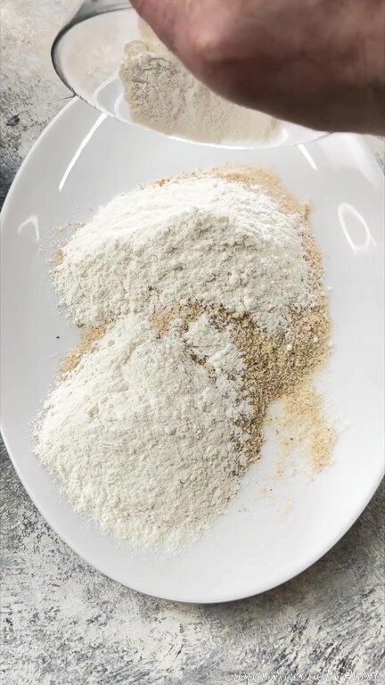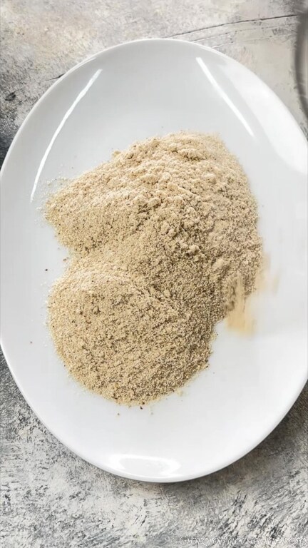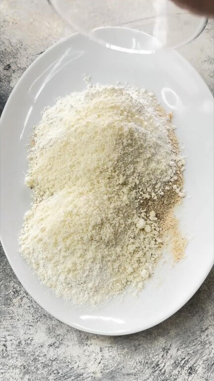 Para preparar la receta de las chuletas de carne a la pizzaiola empieza con el empanado. Vierte en una bandeja el pan rallado,