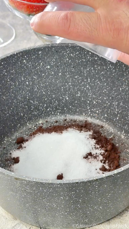 Para preparar la copa de chocolate, en un cazo en frío vierte el cacao,